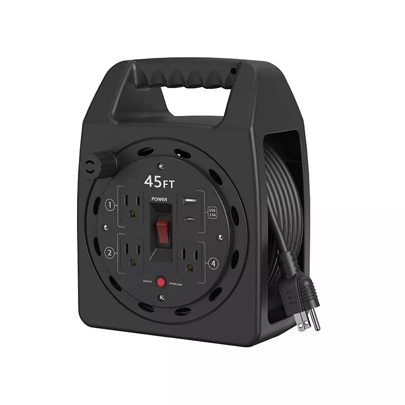 Нингбо Каифенг 3 утичнице Усб2.4а пластични колут за кабл 45 стопа са функцијом заштите од преоптерећења и применом